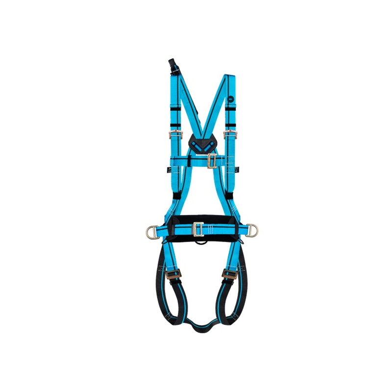 Arnés anticaídas ligero y de larga duración. Dispone de una anilla anticaídas dorsal con cinta de extensión y dos anillas textiles anticaídas frontales. También incluye cintas regulables en pecho y pernera.Capacidad de uso 140 KgNorma EN361