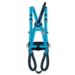 Arnés anticaídas ligero y de larga duración. Dispone de una anilla anticaídas dorsal con cinta de extensión,dos anillas textiles anticaídas frontales y cinturón de posicionamiento.
